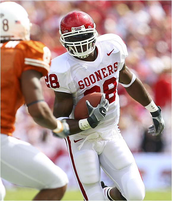 After bursting onto the scene in 2004 with the most prolific rushing season ever by a freshman (1,925 yards and 15 TDs) and finishing second in Heisman voting, Peterson's hype faded a bit in his sophomore campaign as he missed some time with a badly sprained ankle and Oklahoma fell from grace.