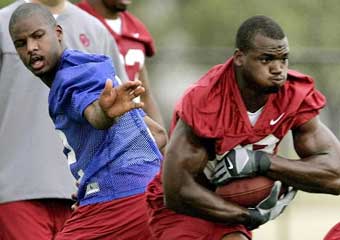 "Even the best backs in college football can’t do it all by themselves. Oklahoma’s terrific Adrian Peterson saw his production cut in half last year after rushing for nearly 2,000 yards as a freshman. An inexperienced offensive line and a new quarterback were the primary reasons."