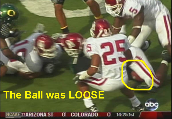 When you have an OREGON ALUM say it should be OU's ball you know. OU ended up with the ball, yet the refs didn't realize OU had the ball.