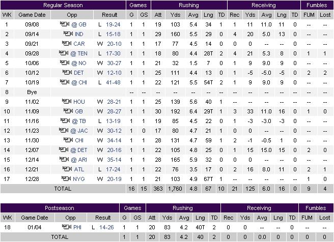 Adrian Peterson Stats 2008 NFL.