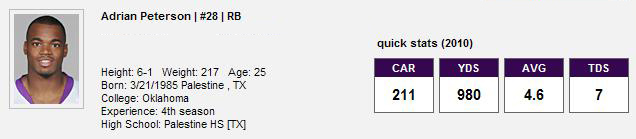 Adrian Peterson Stats 2010